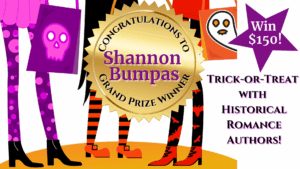 Congratulations to the Historical Romance Author Trick-or-Treat Halloween Hop Grand Prize Winner! Out of 138 entries, the random number generator picked #6 which is: