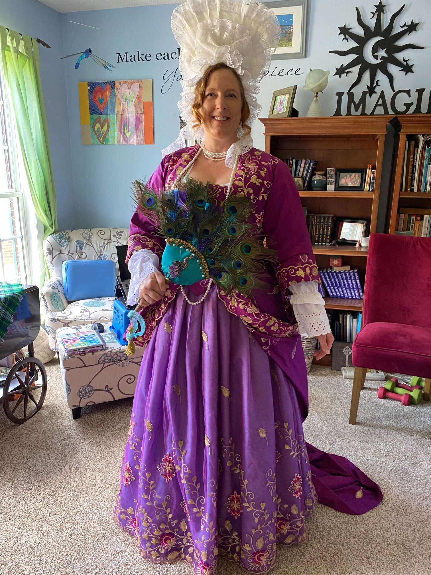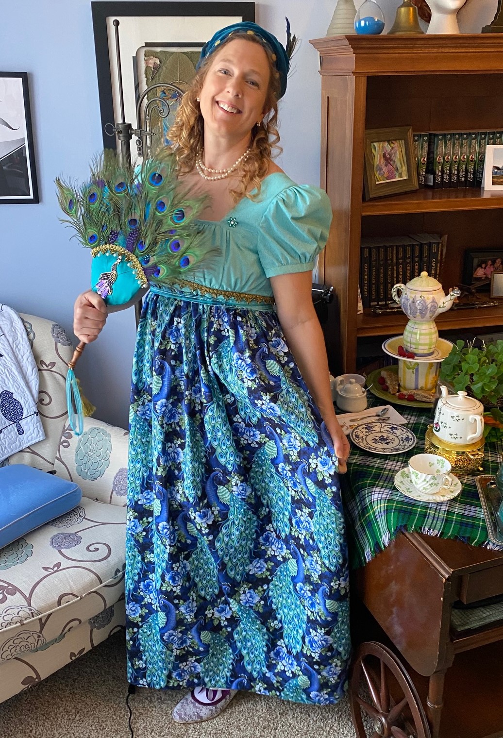 - Peacock Regency Gown, Turban, and Fan